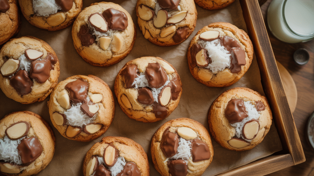These Almond Joy cookies are a delightful combination of chocolate, coconut, and almonds, inspired by the beloved candy bar. Soft, chewy, and packed with flavor, they bring together a coconut base, crunchy almonds, and melty chocolate for a quick, indulgent treat. With this recipe, you can enjoy homemade, bakery-style cookies in under 20 minutes.