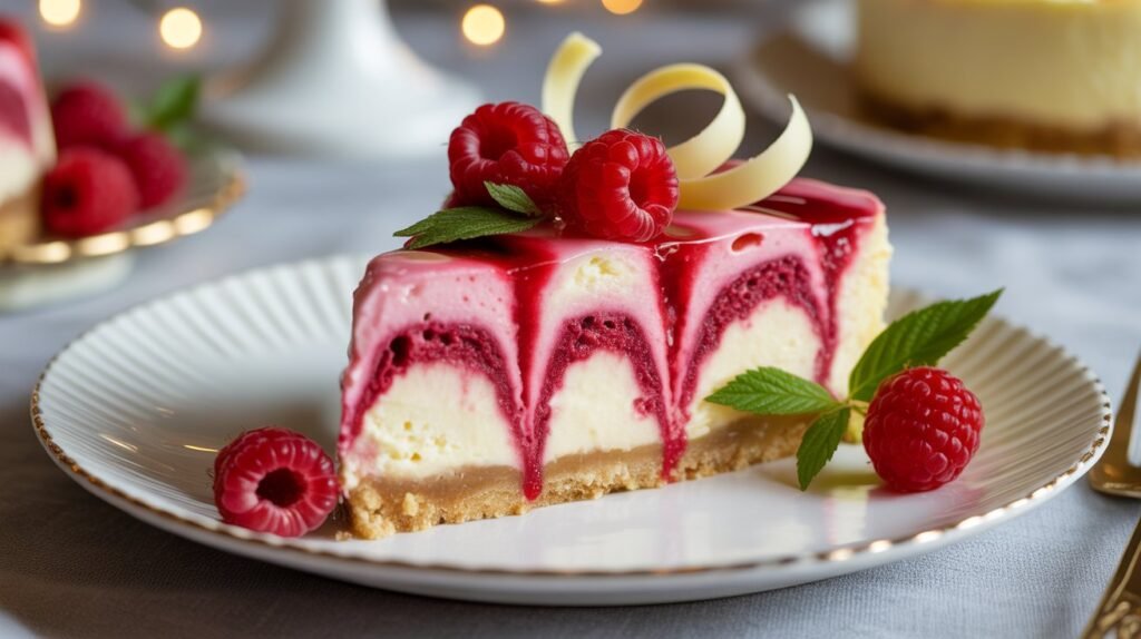 This Raspberry White Chocolate Cheesecake is elegant, sweet, and beautifully balanced. The creamy white chocolate filling pairs perfectly with vibrant raspberry swirls, creating a stunning marbled effect in every slice.