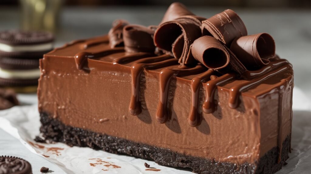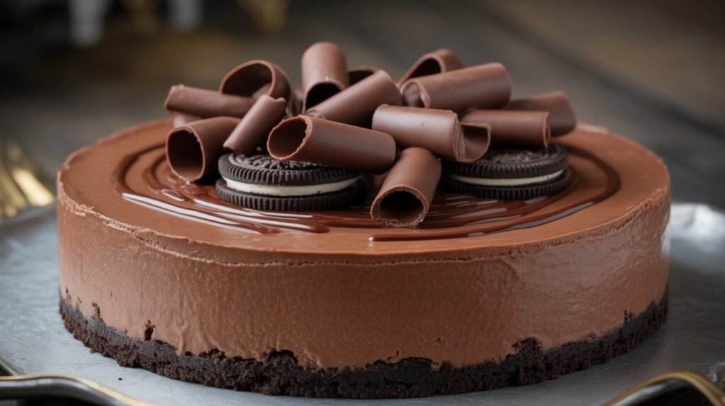 This recipe also uses an Oreo cookie crust, which adds the perfect touch of crunch and enhances the overall chocolatey experience. It’s bold, dramatic, and irresistibly delicious—ideal for holidays, celebrations, or whenever you need a decadent treat.