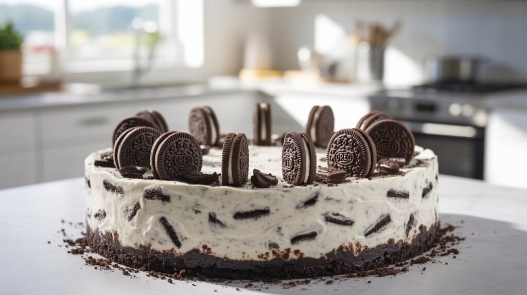 • 12–14 Oreo cookies, chopped (for folding into the filling)