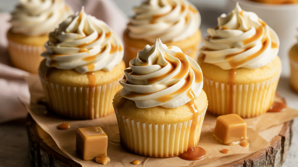 Blending the flavors of classic vanilla with a touch of smooth caramel creates a cupcake that is elegant yet comforting. Each element—from the tender crumb to the creamy frosting—works together to deliver a beautifully balanced treat that tastes just as stunning as it looks.