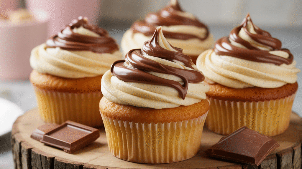 These Moist Vanilla Cupcakes topped with a luscious Nutella swirl frosting are a dream for chocolate-hazelnut lovers. The cupcakes are soft, fluffy, and full of classic vanilla flavor, while the frosting delivers a creamy, silky blend of buttercream and rich Nutella. Every swirl is smooth, decadent, and irresistibly glossy—perfect for birthdays, parties, or any dessert craving that calls for something special.